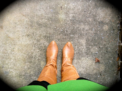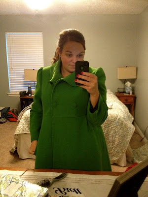 It was back to work today and surprisingly cold all day. So, we had a green peacoat, black dress underneath, black leggings, and my most favorite boots ever.